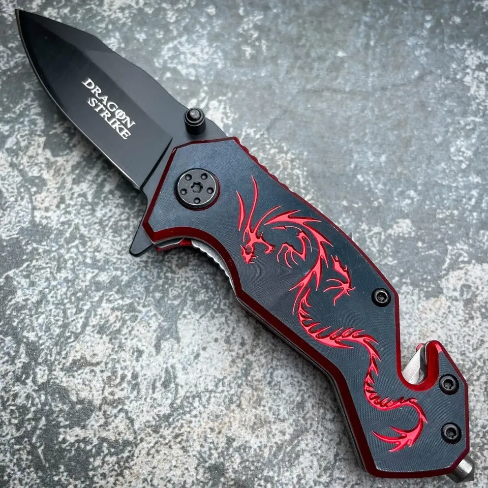 6″ Black Red Dragon Knife Tactical Fantasy Spring Assisted