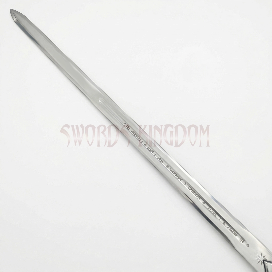 - Its stainless-steel blade is mirror-polished, paired with an ornate hilt featuring Elven-inspired designs.