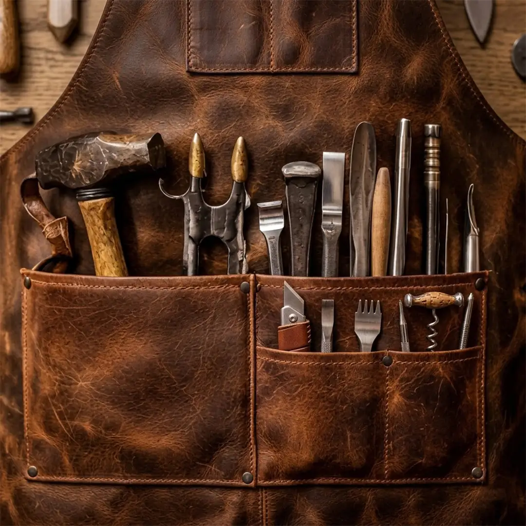 This apron is made from premium leather designed for durability and long-term use. It provides reliable protection in demanding workshop environments.
