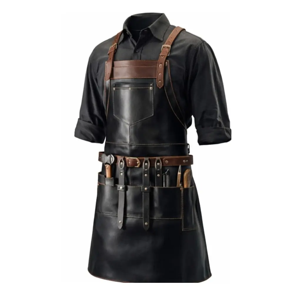 This apron is made from premium crazy horse leather, known for durability and a distinctive aged appearance. The leather surface develops character over time while maintaining strong protection.