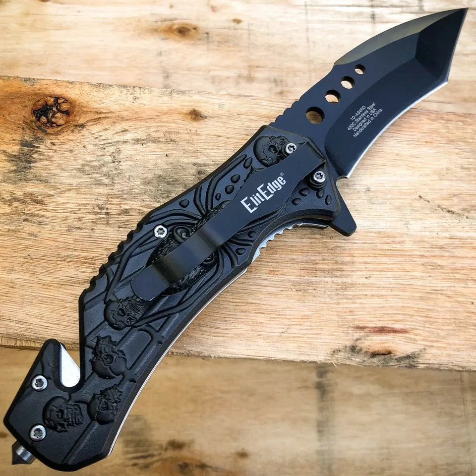 Skull Spider Folding Knife 8.5″ Military Spring Assisted Blade