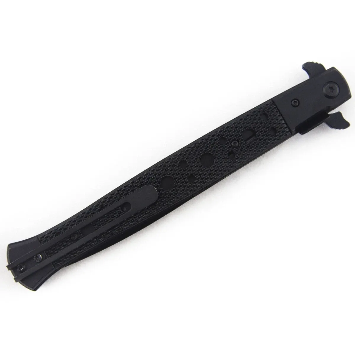 It features a 5.5-inch spear point stainless steel blade with a plain edge, giving you a sharp and durable finish. The G10 handle provides a strong, comfortable grip, while the liner lock ensures secure use. At 12.5 inches overall, it makes a bold statement whether for everyday carry, display, or gifting. Stylish, functional, and factory-fresh this stiletto is ready to impress. Order Now.